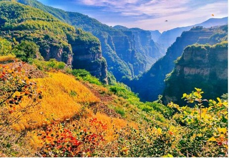 - 继续前进,经过董家寨,从天梯下山,抵达八里沟峡谷,八里沟荟萃了太行山水精华,集奇、险、俊、秀、幽于一谷,号称“太行之魂、中华风骨”,被园林专家誉为“亚洲一绝”,是太行山水精粹所聚之地。八里沟也是新乡南太行的主要景点,号称北方水世界,一条八里长的沟,有水,有瀑布。尤其是水帘洞,设计得很巧妙。我们从景区正门出来集合。