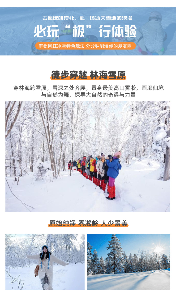 【冰雪奇缘·秘境追寻】哈尔滨一亚雪高山雾凇-徒步穿越林海雪原一龙江第一峰一雪乡夜景一户外野迪