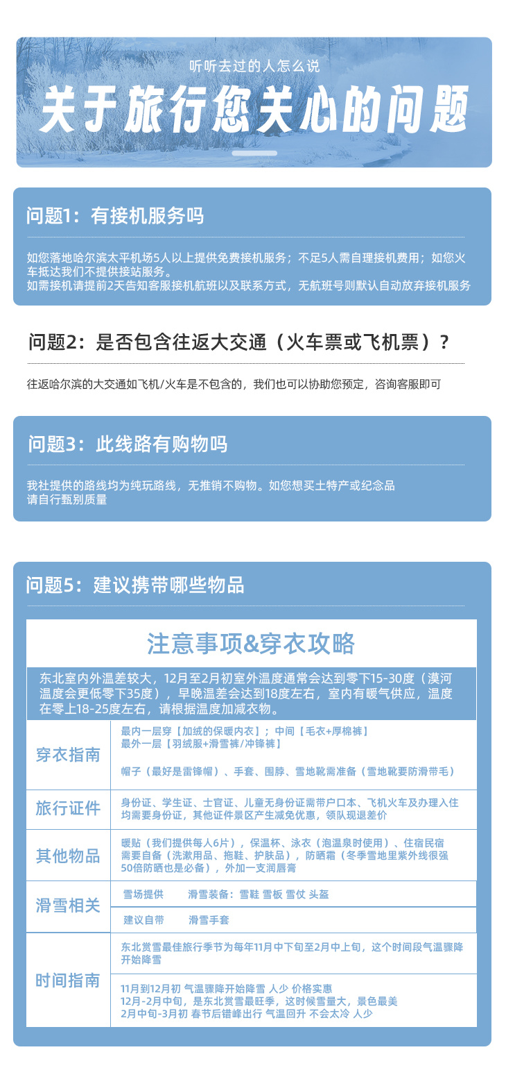 1.到东北往返的交通费自理,提早订机票会便宜很多,