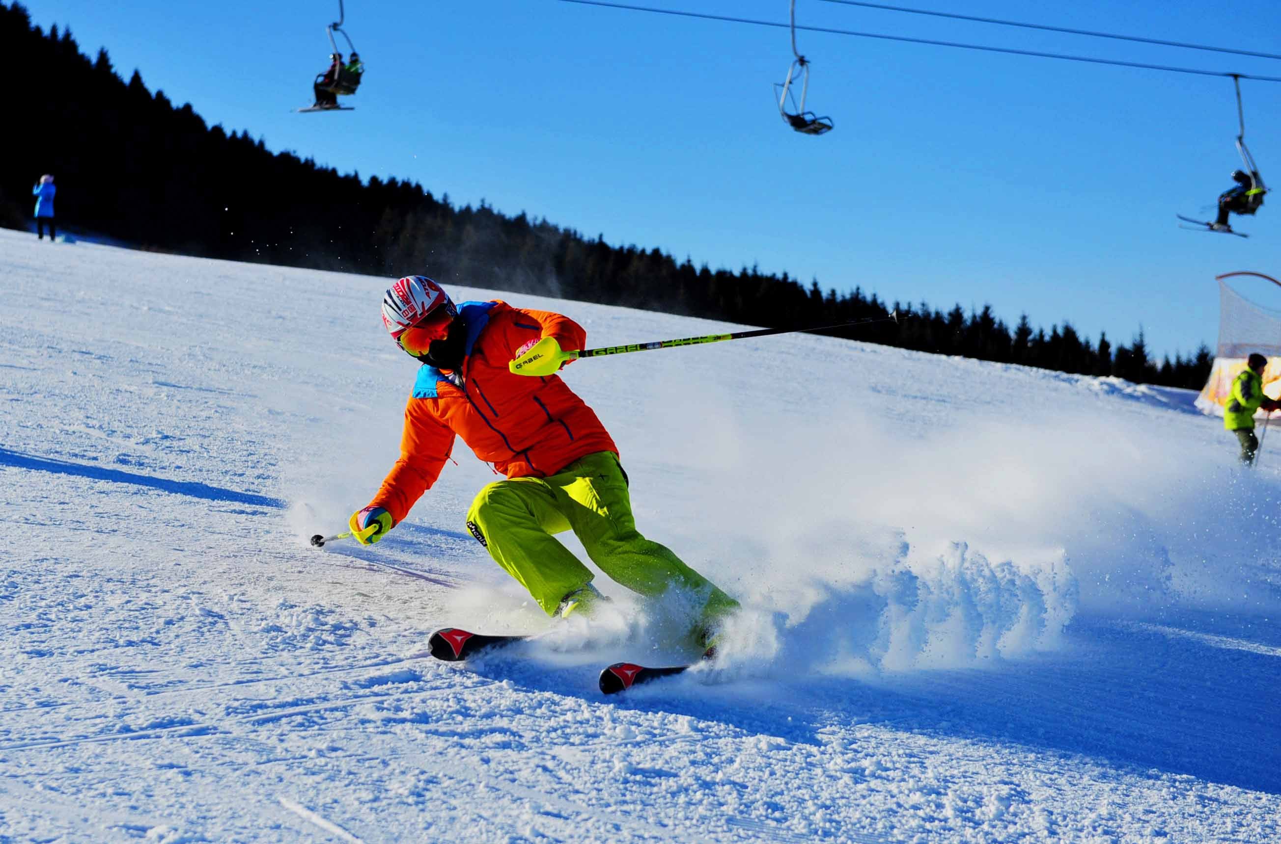 乘车奔赴【亚布力滑雪场】,到达滑雪场,在领队的帮助下领取装备:雪板、雪鞋、雪仗,全副武装的我们瞬间变身滑雪达人!无论是第一次尝试的初学者,还是有一定经验的滑雪爱好者,都能在这里找到乐趣。