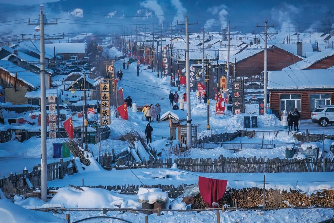 清晨在北红村的鸡鸣声中醒来,推开门仿佛踏入巨型的冰雪蛋糕世界。这是专属于北国的仪式: