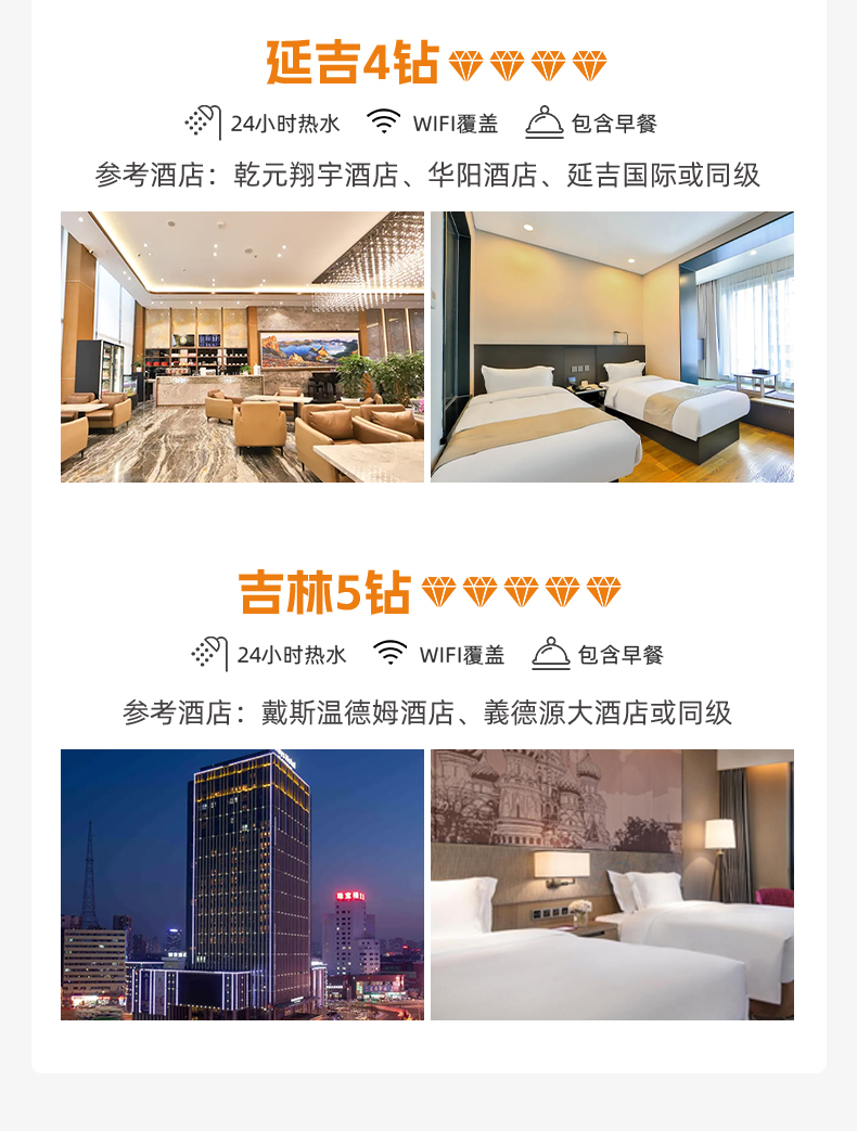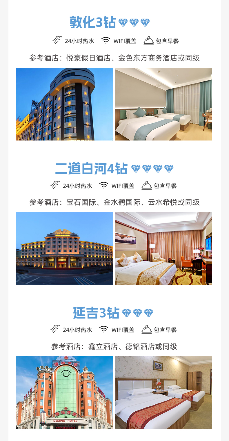 备注:酒店钻级参考标准:3钻为当地舒适型酒店、4钻为当地高档型酒店,5钻为当地豪华型酒店,东北经济发展较南方相对落后,与大城市同级别酒店略差,敬请见谅