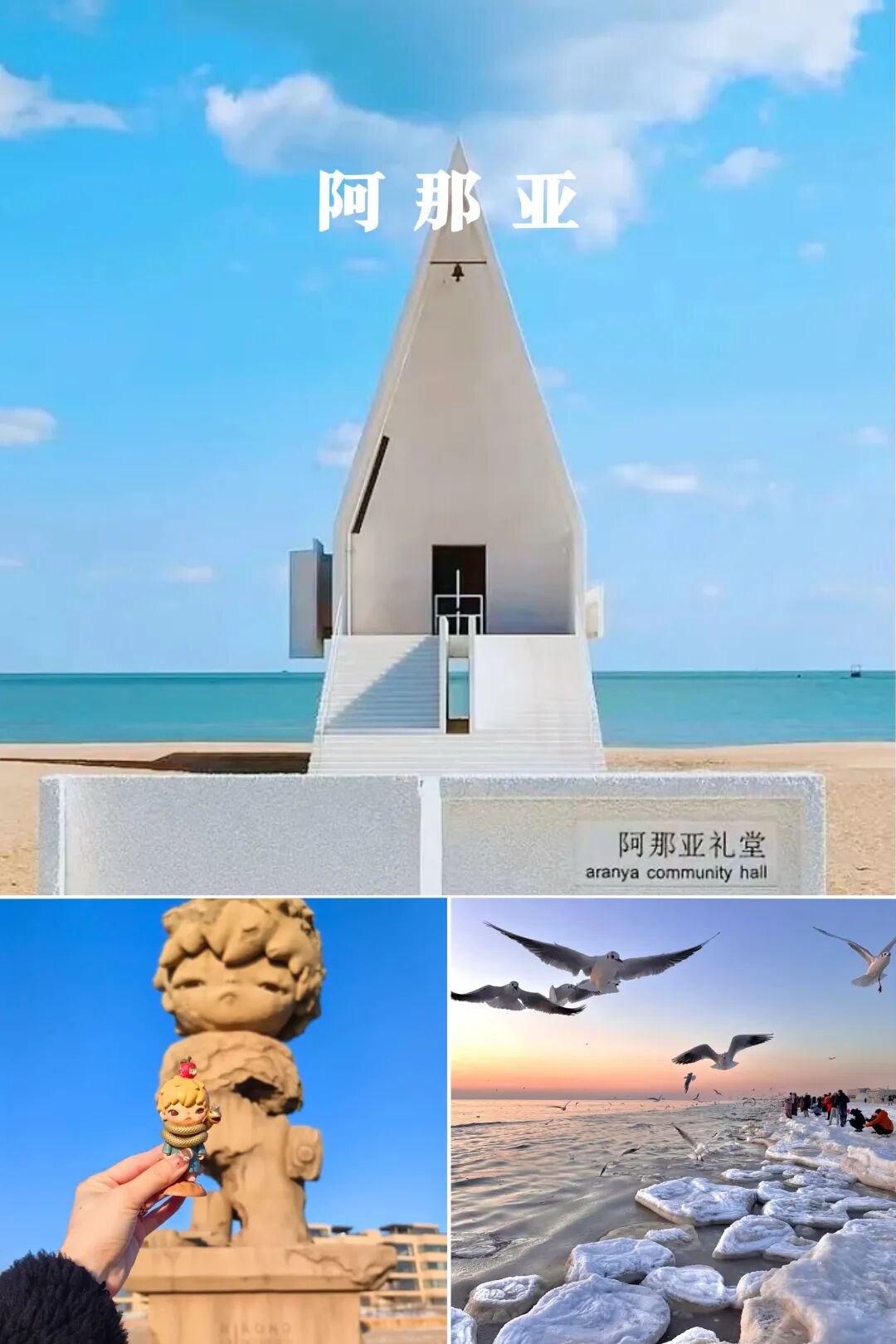 阿那亚有与海相伴的孤独图书馆,独特造型和静谧氛围成热门打卡点;洁白的阿那亚礼堂极具设计感,是艺术展、音乐会举办地;隐匿沙丘之下的 UCCA 沙丘美术馆,室内展厅借 “洞口” 将海景引入,与艺术展品相映成趣。除了这些标志性建筑,阿那亚还有优质海滩,沙质细腻,海水清浅。