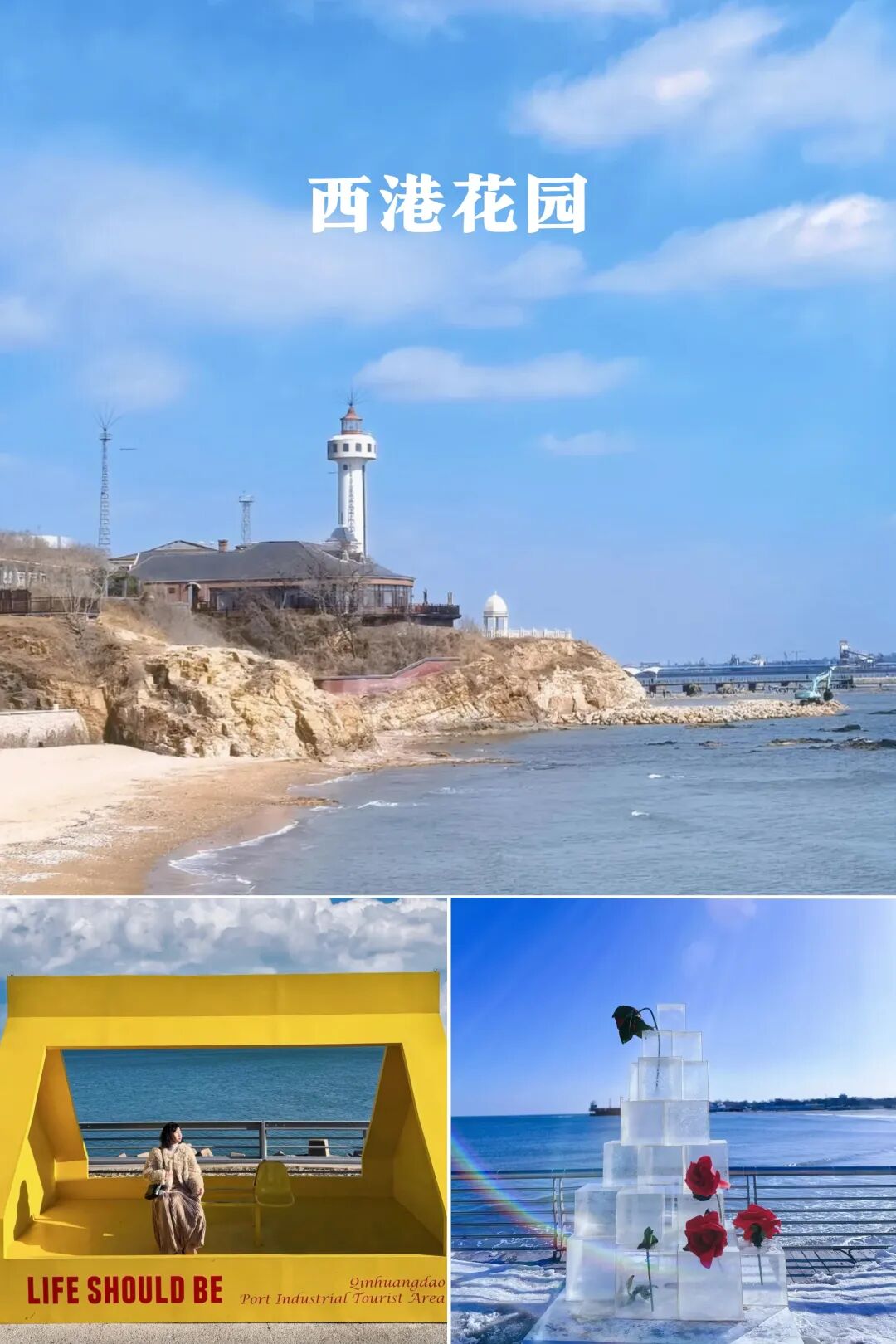 秦皇岛西港花园|北方海边的"小镰仓"在铁轨与海浪间,邂逅百年港口的浪漫重生,邂逅百年港口的浪漫重生,废弃的铁轨蜿蜒向海仿佛一条通往旧日辉煌的“时光隧道”锈迹斑斑的火车 快门按下 定格工业与自然的诗意碰撞,白色灯塔矗立海岸,木质栈桥延伸向蔚蓝,潮声如歌,海鸥盘旋 落日将灯塔染成金色,斑驳的红砖厂房变身艺术展厅,起重机化作巨型雕塑,涂鸦墙泼洒着现代色彩老港口的沧桑与现代设计的灵动,在镜头下交织出独。