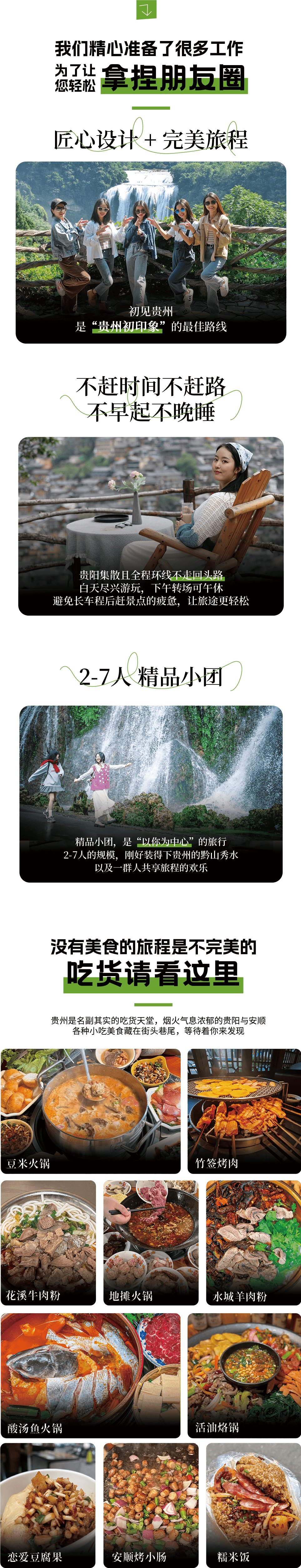 ② 美食推荐:青岩猪脚、豆腐丸子、糕粑稀饭、独山虾酸、荔波豆花烤鱼、佳荣生态牛肉火锅;