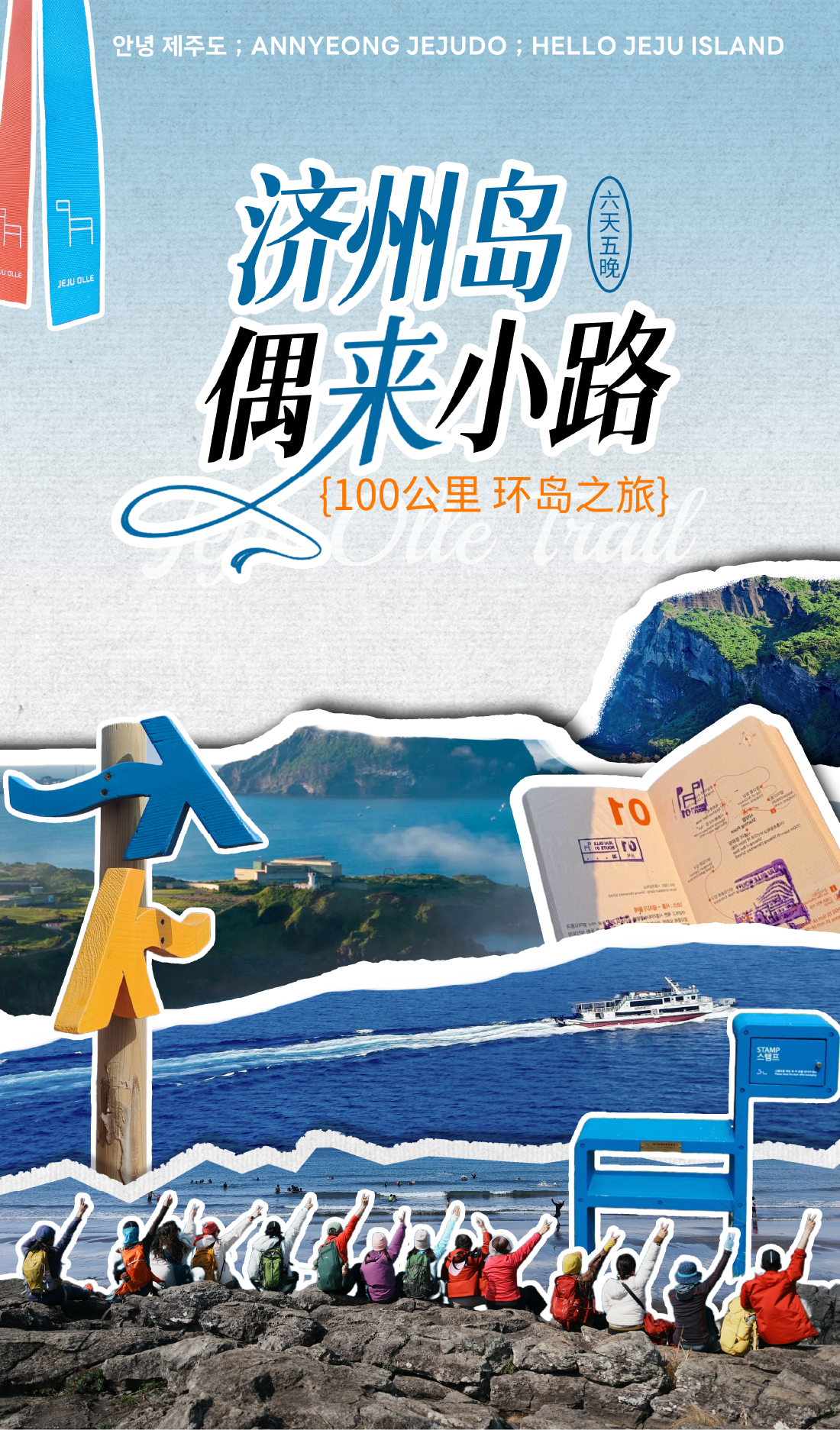 早餐后退房,将行李统一寄存前台。今天我们将完成100km。到达孤根山脚下,我们沿着步道而上,没多久到达山顶,蓝色小马就在我们面前,盖完章下山,路过翁渡瀑布,来到西归浦客运站,这里是7号线的终点和7-1的起点。