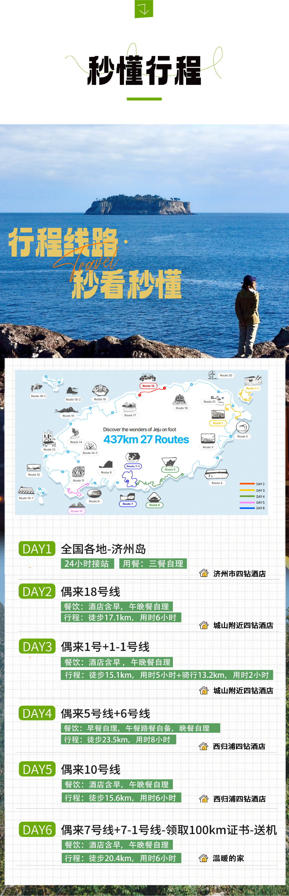 住宿:四钻酒店5晚(济州1晚+城山2晚+西归浦2晚)